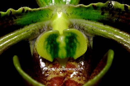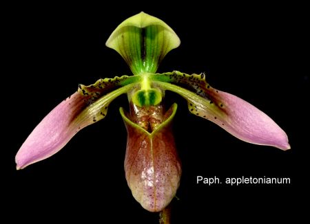 While Paph. wolterianum is found only in southern Thailand, Paph. appletonianum is widespread in northern Thailand, Vietnam, Laos, and southern China.