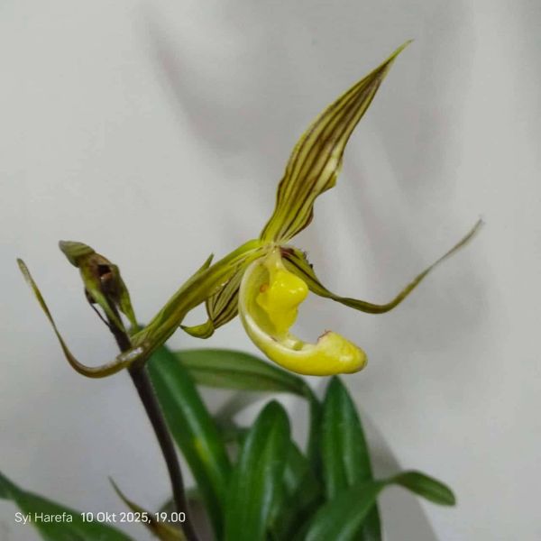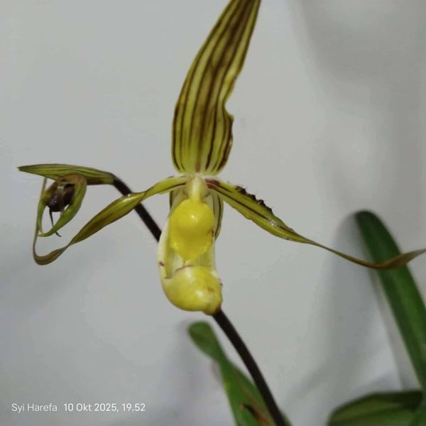 Due to the unusually small, shoe-like flower head, this bloom could not be classified as belonging to any other known species of Paphiopedilum. Cavestro, together with Dody Nugroho, described these plants as a new species and named them Paph. syiharefanum after Syi Harefa.