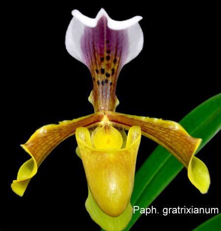 Der englische Botaniker MASTERS beschrieb diese neue Art auf Wunsch von SANDERS nach einem guten Kunden der Firma, dem Industriellen GRATRIX aus Manchester, als Paphiopedilum gratrixianum.