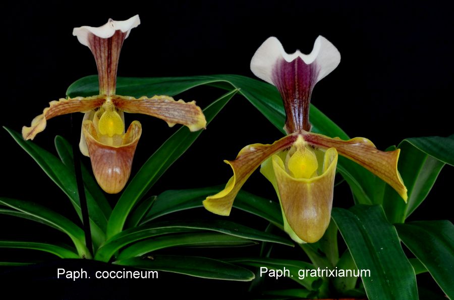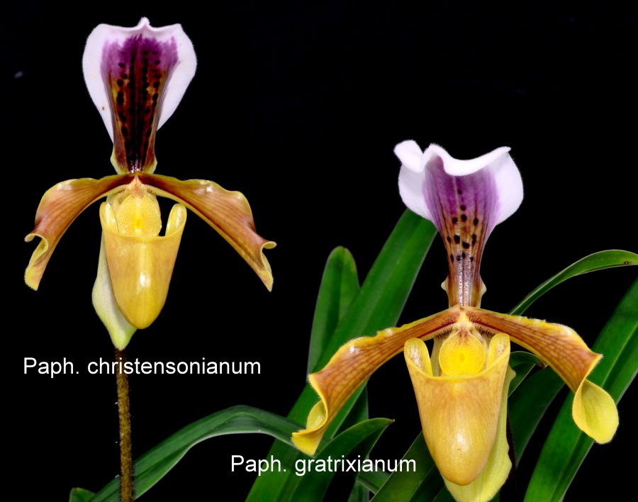 For comparison, here are the two species Paph. gratrixianum and Paph. christensonianum: