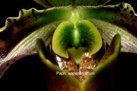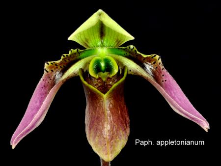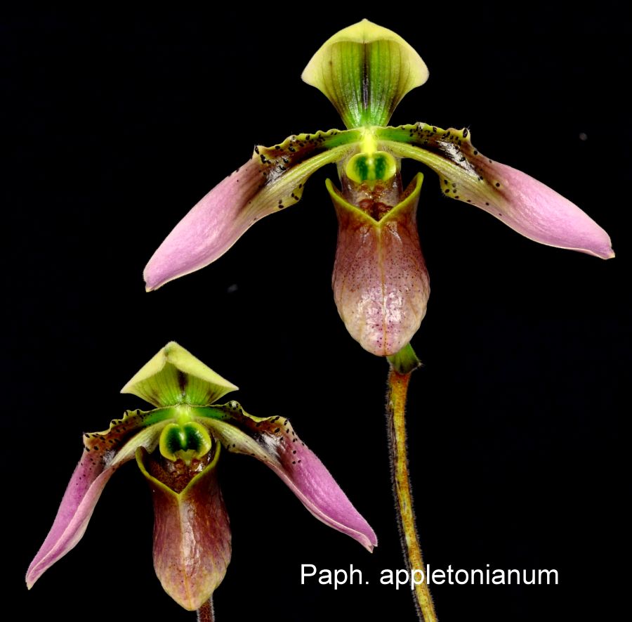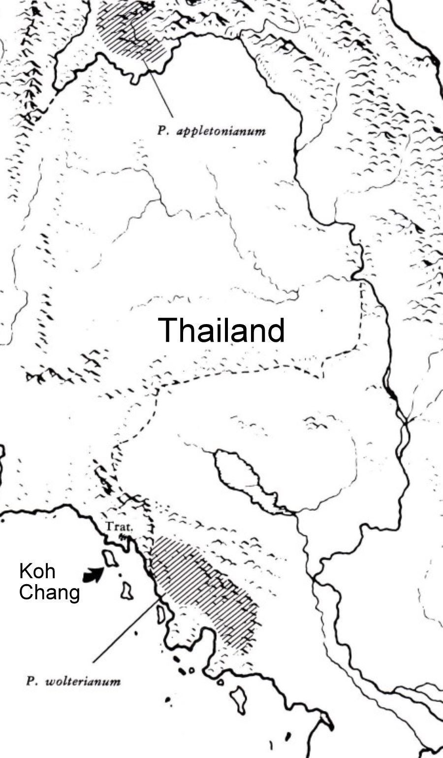 While Paph. wolterianum is found only in southern Thailand, Paph. appletonianum is widespread in northern Thailand, Vietnam, Laos, and southern China.