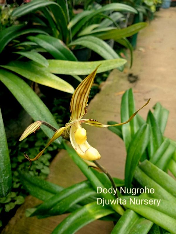 Due to the unusually small, shoe-like flower head, this bloom could not be classified as belonging to any other known species of Paphiopedilum. Cavestro, together with Dody Nugroho, described these plants as a new species and named them Paph. syiharefanum after Syi Harefa.